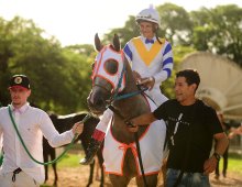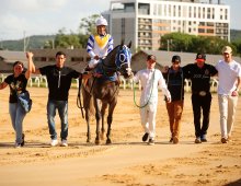 O castanho GULF DO JAGUARETE chegou aos sexto triunfo consecutivo ao vencer na noite da ultima quinta-feira, o Clássico Presidente Indemburgo de Lima Silva, prova essa no percurso de 1.100 metros. Não bastasse essa sequência incrível de vitórias, o defensor de Vanessa Ruas e Diego Pauletto resolveu tornar-se também recordista da distância. Treinado por Rogério Arias, e conduzido por César Dias Carvalho, a tendência é de que ele siga escrevendo seu nome na história do Jockey clube do Rio Grande do Sul. VINGADOR LÔ em mais uma atuação luxuosa formou a dupla.