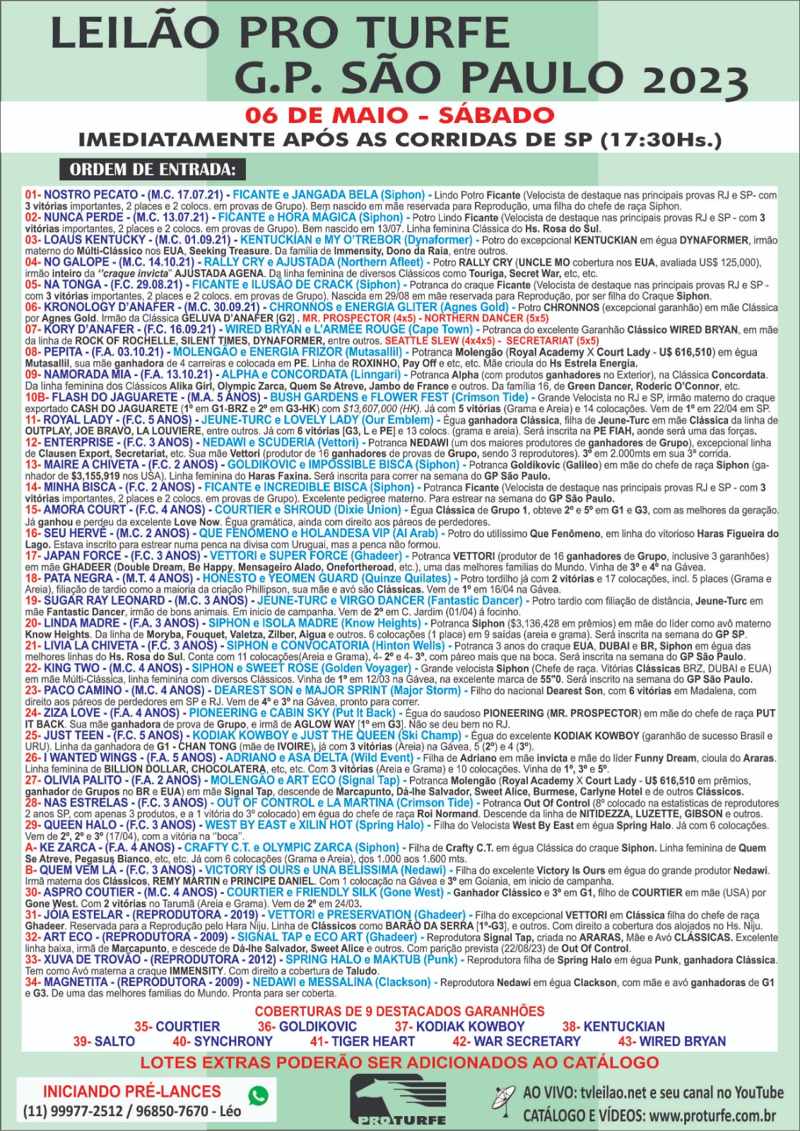 Páreo 303/304) 1.300 (Areia): BARBARA DA LAGOA 55 (1)/BONECÃO DO POSTO 57 (2)/JESUÍTA 57 (3)/OLD VICTORY 57 (4)/PINOCCHIO 57 (5)